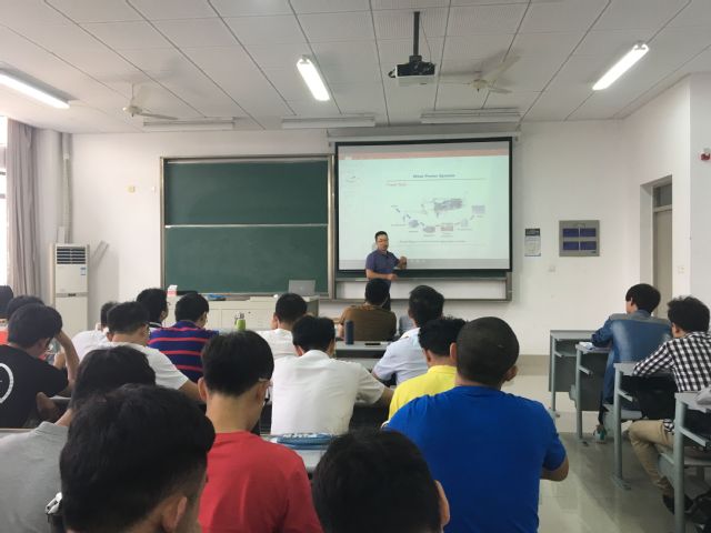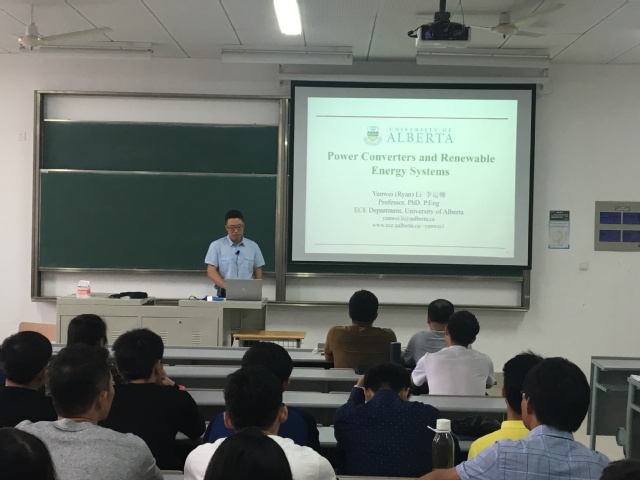 李教授在介绍加拿大阿尔伯塔大学的基本情况后,以《Power Converters and Their Applications》为主题,讲解了电力电子技术在新能源电力系统中的应用。李教授从基础性理论出发阐述了电力电子变流器控制技术在电动机驱动、高压直流输电中的应用。李教授浅显易懂的讲课风格,充分调动了学生的听课积极性。