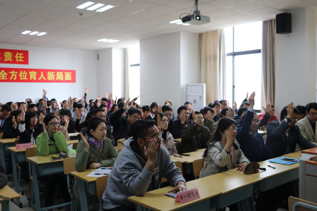jdb电子游戏官方网站党委应到具有表决权的正式党员106名,除10人因病因事请假的党员外,其他96名正式党员参加了会议,出席率达到90.57%。大会依次通过了选举办法、监票人、计票人以及15名代表候选人预备人选名单等;杨书记详细传达了学校党委分配给学院党委的代表名额和结构要求,并向与会代表讲解了填写选票注意事项,96位具有表决权的正式党员严格按照选举办法,认真填写选票,投上了自己庄严的一票。