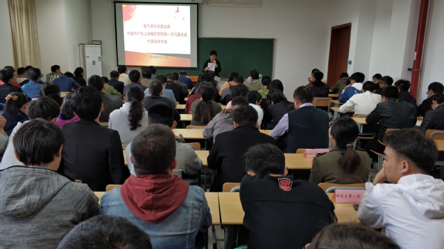 4月13日下午12点30分,jdb电子游戏官方网站党委在电气楼301举行出席学校第一次党代会代表选举大会。选举大会由学院党委书记杨幼君主持,学院组织委员崔雪作为总监票人,全院师生党员参加了选举大会。