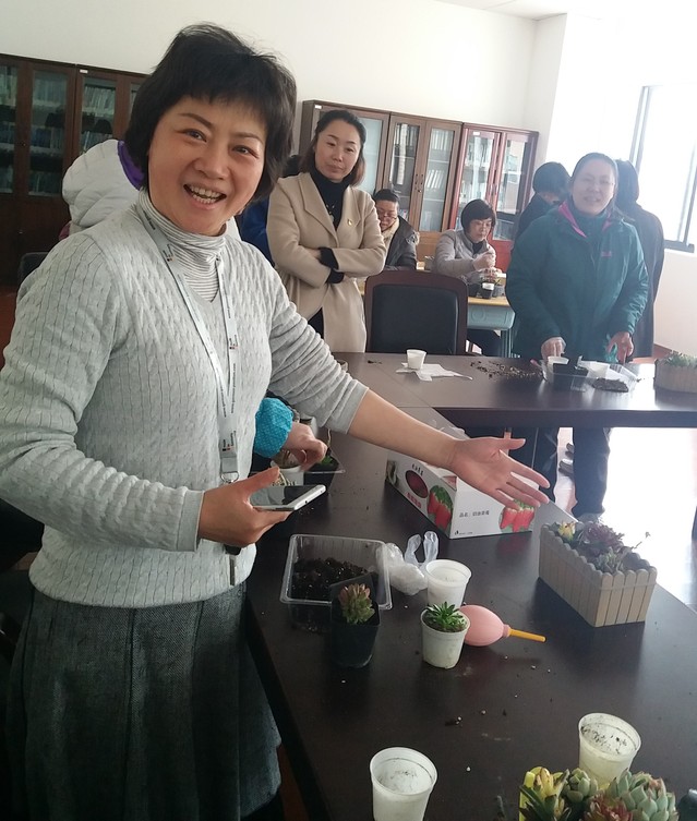 为庆祝第108个“三八”国际劳动妇女节,丰富女教职工的文化生活,3月16日,jdb电子游戏官方网站分工会组织全体女教职工在电气楼508举行多肉植物种植活动。