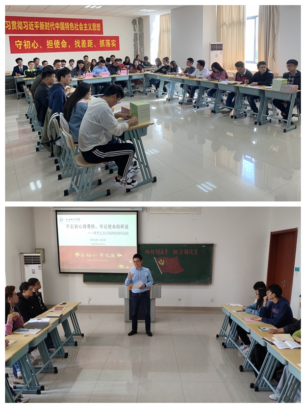 10月31日,jdb电子游戏官方网站党委研究生第二党支部在jdb电子游戏官方网站303教室举办了不忘初心深帮扶、牢记使命助研途——研究生党员海鸥助翔再起航主题党日活动。这是研究生第二党支部在2017年海鸥助翔活动的基础之上再次举办研究生党员群体面向本科考研学生的帮扶活动。jdb电子游戏官方网站党委书记吕小亮,副书记、副院长卿海龙,专职组织员冯雯雯以及jdb电子游戏官方网站党支部书记代表应邀出席,研究生第二党支部全体党员以及jdb电子18位2017级考研学生代表参加了此次活动。