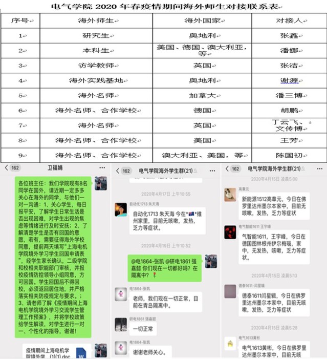 学院将继续贯彻落实学校新冠肺炎防控工作领导小组的各项工作要求,持续关注海外师生的情况,根据疫情发展变化情况,采取相应帮助措施,协助他们抗击疫情。无论身在何方,纵使相隔万里,祖国和学校、学院始终是师生们的坚强后盾。海内外电气师生休戚与共,同心抗疫,共克时艰。(蓝媛媛)