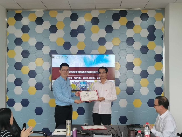 jdb电子游戏官方网站党委书记吕小亮、院长陈国初分别为联系jdb电子的方恩升、苗磊两位思政指导员颁发聘书,吕小亮代表学院党委感谢二位老师受聘,并期待两位在宣传新思想、课程思政建设和大学生思政工作方面多给予jdb电子游戏官方网站更多的指导和帮助。方恩升老师也表示受聘学院思政指导员是不仅学校党委的信任,后期将在相关工作方面与jdb电子游戏官方网站师生一起努力,打造富有温度、广度和深度的思政工作品牌。