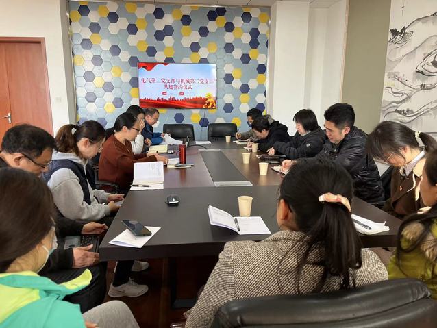 为加强基层党组织建设,进一步推进党建工作与业务工作的深度融合,发挥党组织的凝聚力和战斗力,形成互带互动、优势互补、共同发展的基层党建新格局。3月8日上午,正值三八妇女节,jdb电子游戏官方网站第二党支部书记朱晨烜与机械学院第二党支部书记孙群带领两个支部的教师党员齐聚电气楼401室,共谋党建促进党的教育事业发展之大计。会议由jdb电子游戏官方网站第二党支部书记朱晨烜主持,双方支部共16名同志参加了签约仪式。