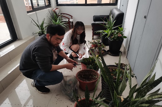 为了引导党员树立环保意识、传播绿色理念,用实际行动美化校园环境,在校园准封控管理的特殊时刻,3月26日下午,jdb电子游戏官方网站第八党支部小分队来到了jdb电子游戏官方网站楼进行一次特殊的劳动教育——浇花、修剪花草。