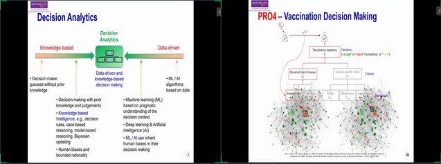 陈教授首先对曼彻斯特大学和阿兰·图灵研究院在数据科学领域的研究方向和杰出成果作了介绍。其次,陈教授通过分析决策对象、决策指标、证据理论、数据与知识的融合等,阐述了如何对决策问题进行建模及分析。最后,陈教授结合自身研究的四个项目讲解了如何运用人工智能的方法辅助各个领域的决策分析,并重点讲述了如何利用数据、知识在新冠疫苗接种决策分析方面的应用。