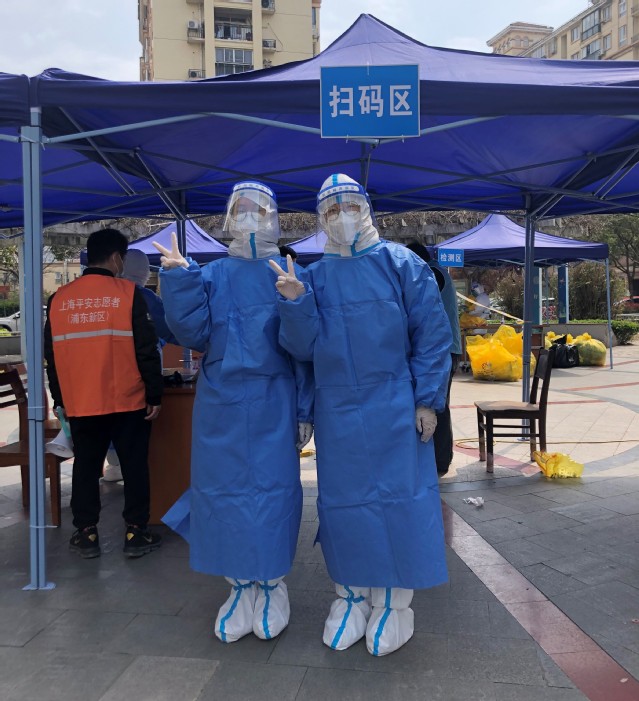 沈依晨、王馨晨两位学生党员在接到封控指令后,第一时间向社区报到,从环境的消杀到人员秩序维护,从整理归纳咽拭子采集管、到为社区居民答疑解惑,他们严格地按照防疫措施推进。为不会使用智能手机的老人送去温暖,询问是否物资充足是她们每天起床做的第一件事。“2020年年初我们也是抗击疫情的志愿者,这次的任务更重,我们更要不折不扣地完成任务!”沈依晨、王馨晨自豪地说。(撰稿:潘娜、王海明;审核:卿海龙)
