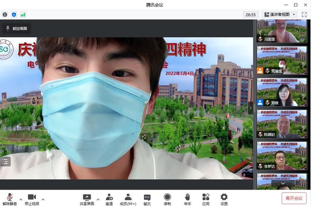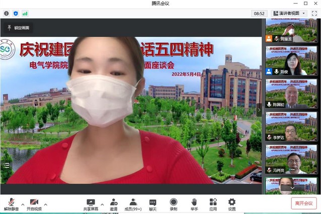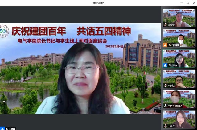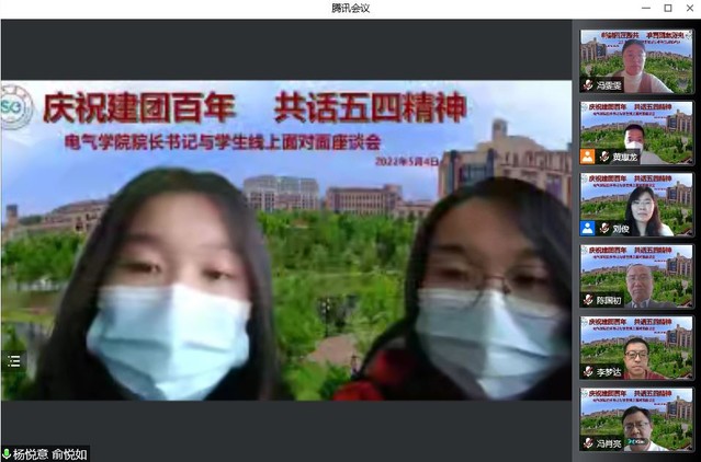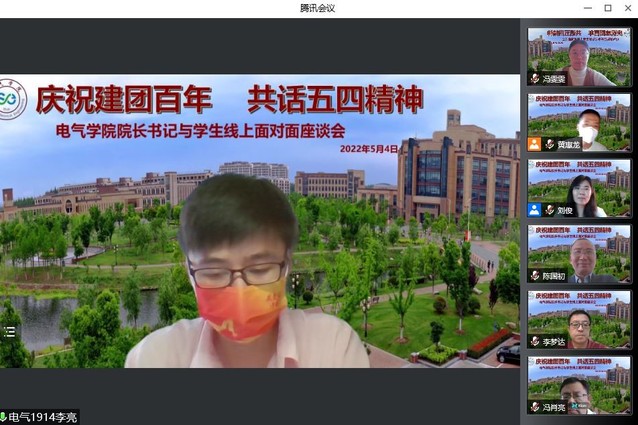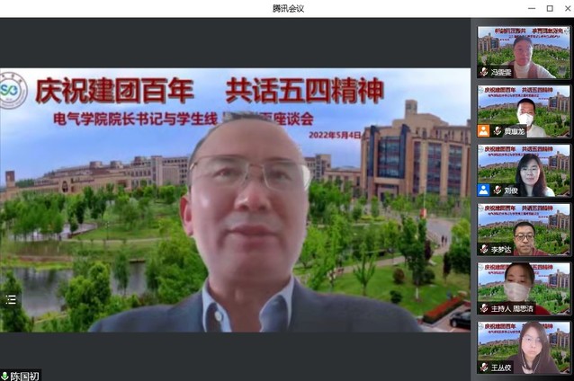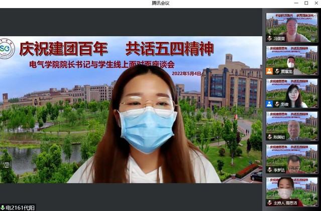 为了激励和引导广大团员青年把握五四精神,进一步弘扬“爱国、进步、民主、科学”的五四精神,增强广大团员青年的社会责任感与历史使命感。5月4日下午,jdb电子游戏官方网站党委书记刘俊、院长陈国初以及其他党委委员、辅导员代表线上共约青年团员,齐聚一堂,畅聊青年成长,共话五四精神,座谈会由电2163班周思洁主持。