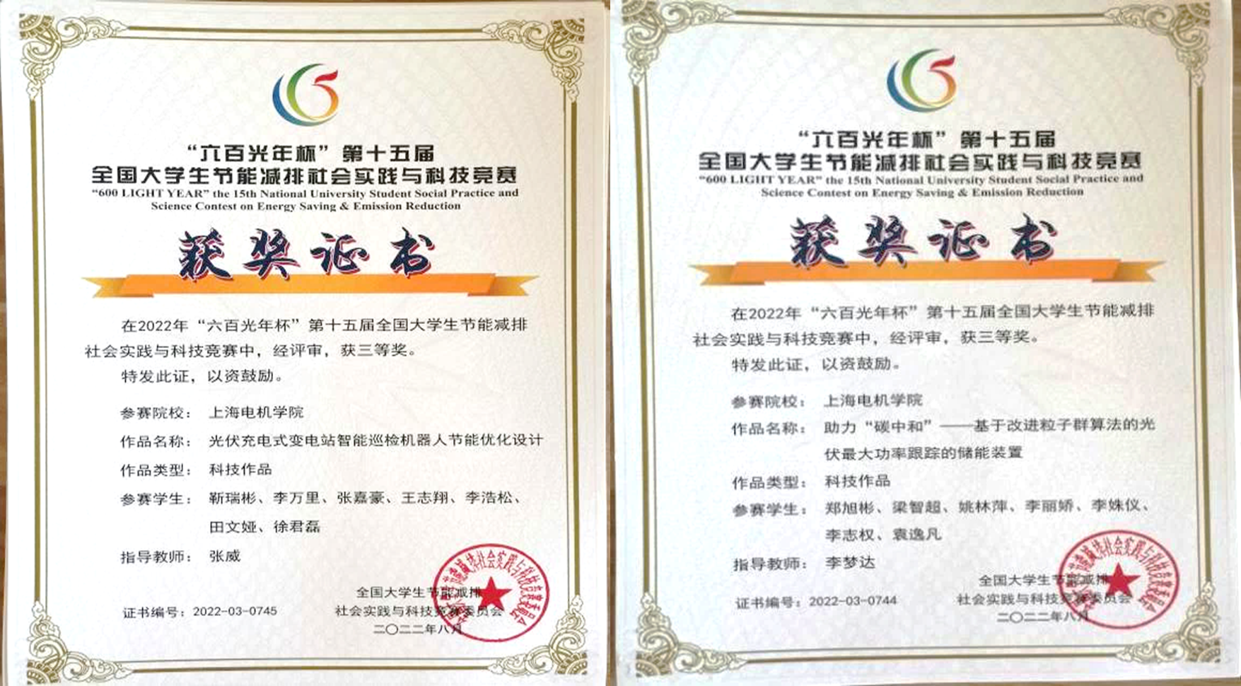 自赛事启动以来,jdb电子积极组织学生参赛。jdb电子游戏官方网站于5月中旬聘请校外专家评审,最终推选出15部作品参加全国比赛。经过网上作品申报、作品初评、评审委员会专家评审等环节,最终由全国大学生节能减排社会实践与科技竞赛委员会评审表决通过,jdb电子学生靳瑞彬、郑旭彬分别负责的《光伏充电式变电站智能巡检机器人节能优化设计》、《助力“碳中和”——基于改进粒子群算法的光伏最大功率跟踪的储能装置》两个作品荣获国家三等奖。