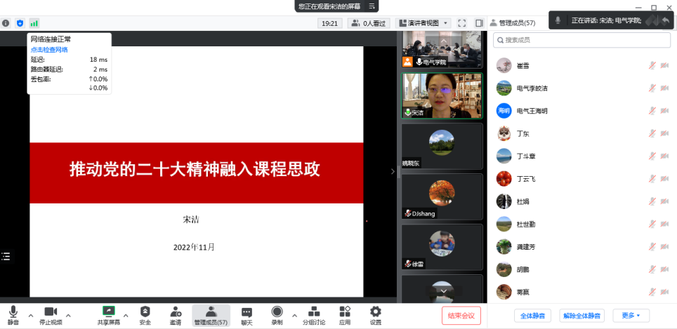宋洁教授的报告获得了老师们的高度认可和赞誉。老师们纷纷表示,通过本次学习开拓了课程思政的视野,对专业课程开展课程思政有了更为明确的目标和方向,接下来要认真在实践中消化、利用,不断提升自身开展课程思政的胜任力和善任力。