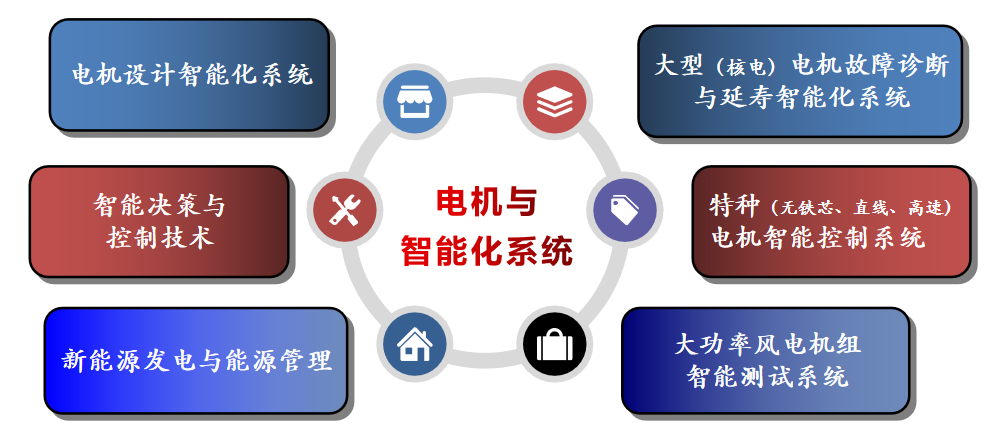 学院现有电机设计智能化系统、大型(核电)电机故障诊断与延寿智能化系统、智能决策与机器人控制技术、特种(无铁芯、直线、高速)电机智能控制系统、新能源发电与能源管理、大功率风电机组。智能测试系统等学科方向,具有无铁芯电机研究团队、智能直驱电机研究团队、特种电机研究团队、风电可靠性研究团队、智能决策与机器人控制研究团队、电机智能诊断研究团队等科研团队10余个。