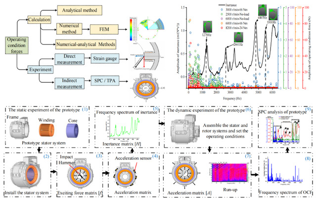 针对这些问题李全峰老师提出了源-路径-贡献(SPC)理论,推导出了电机定子系统的振动惯性矩阵理论,并进行了实验验证,发现对电机振动噪声抑制有明显的效果。