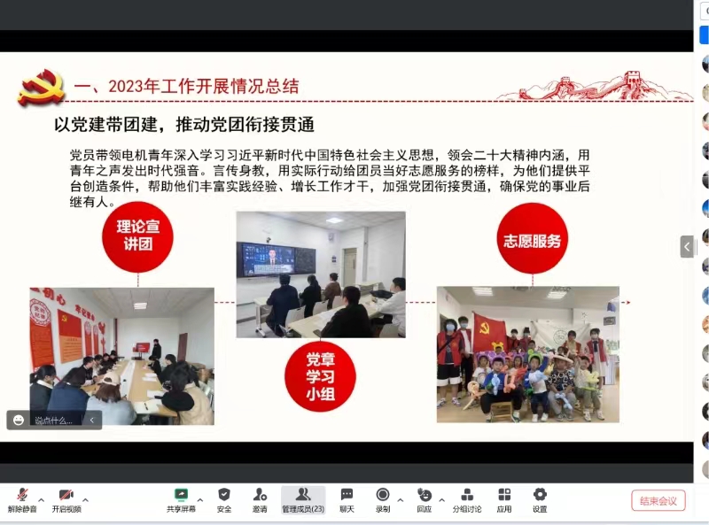 2023年12月28日晚,jdb电子游戏官方网站在线上召开党支部书记述职评议会,jdb电子游戏官方网站党委委员、党支部书记、支部委员及党员代表参加。