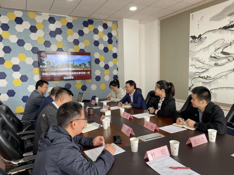 11月6日,江西赣州高新区招商局局长罗汉东、副局长江樱,赣县区商务局副局长曾黎黎、干部孙楠,澳汰尔工程软件(上海)有限公司经理曾庆豪一行莅临jdb电子游戏官方网站开展合作调研。jdb电子游戏官方网站党委书记陈国初,新型电机电控研究中心主任张海燕,智能决策与控制技术研究所教师王西超等参加了交流会。会议由陈国初主持。