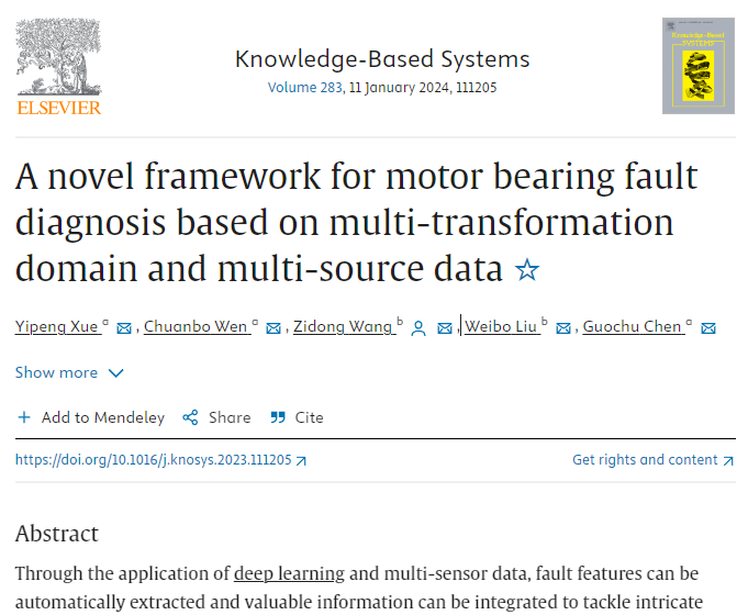 近日,jdb电子游戏官方网站电机智能诊断研究团队从多变换域和多源数据融合的视角出发,提出了一种新的电机轴承故障诊断框架。相关研究结果以“A Novel Framework for Motor Bearing Fault Diagnosis Based on Multi-transformation Domain and Multi-source Data”为题,发表在人工智能领域重要期刊Knowledge-Based Systems(IF 8.8,中国科学院一区Top期刊)上。jdb电子为论文第一单位,硕士研究生薛一鹏为论文第一作者,文传博老师、陈国初老师为共同作者。