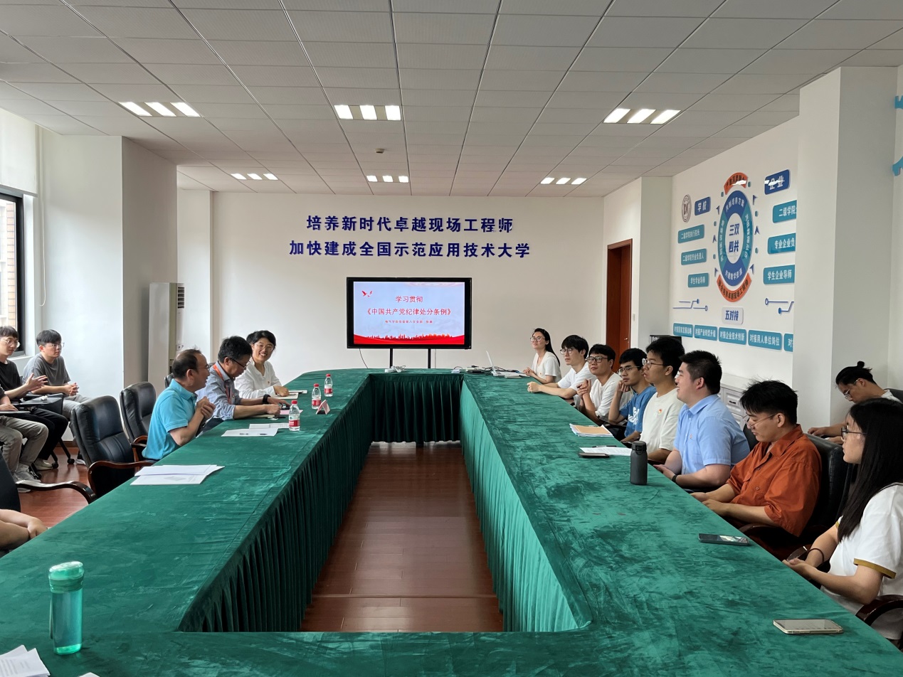 6月26日,jdb电子游戏官方网站第八党支部在电气楼410开展《中国共产党纪律处分条例》(以下简称《条例》)专题学习交流会。联系支部的校党委常委委员刘军莅临指导,学院党委书记陈国初列席参加。