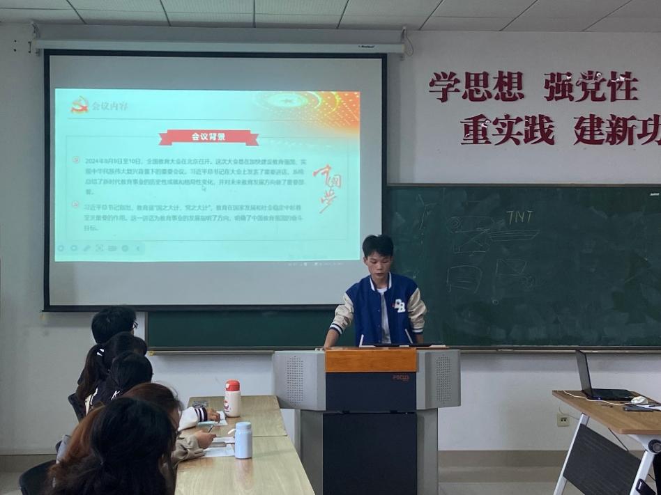 为深入学习贯彻习近平总书记在全国教育大会上的重要讲话精神,进一步推动教育系统思想政治建设和教育质量提升,2024年10月25日上午,jdb电子游戏官方网站第六党支部在电气楼303举办了一场以“学习贯彻习近平总书记在全国教育大会上的讲话精神”为主题的党日活动。