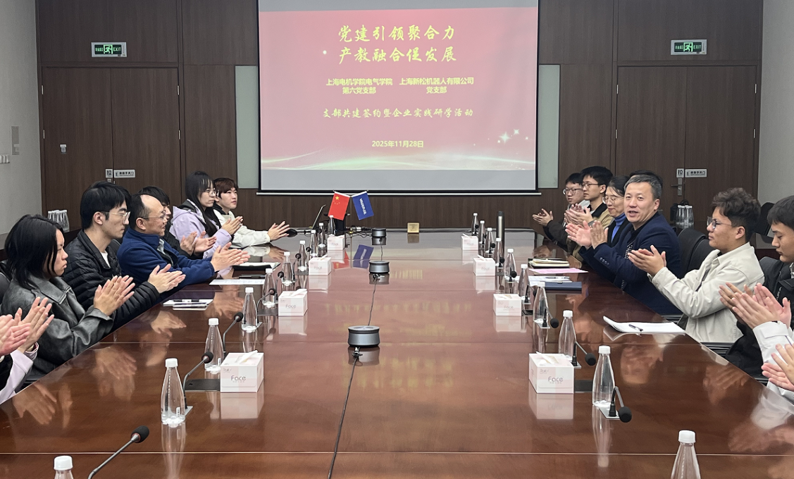 活动伊始,双方在企业会议室举行共建座谈。范文书记详细介绍了上海新松机器人有限公司在智能制造领域的发展布局、技术优势,以及党支部在企业技术创新、人才队伍建设中的战斗堡垒作用。王海明书记介绍了jdb电子游戏官方网站的办学特色、第六党支部的建设成效,重点阐述了支部围绕电机、电气类专业,推动党建与教学、科研、育人深度融合的实践探索。
