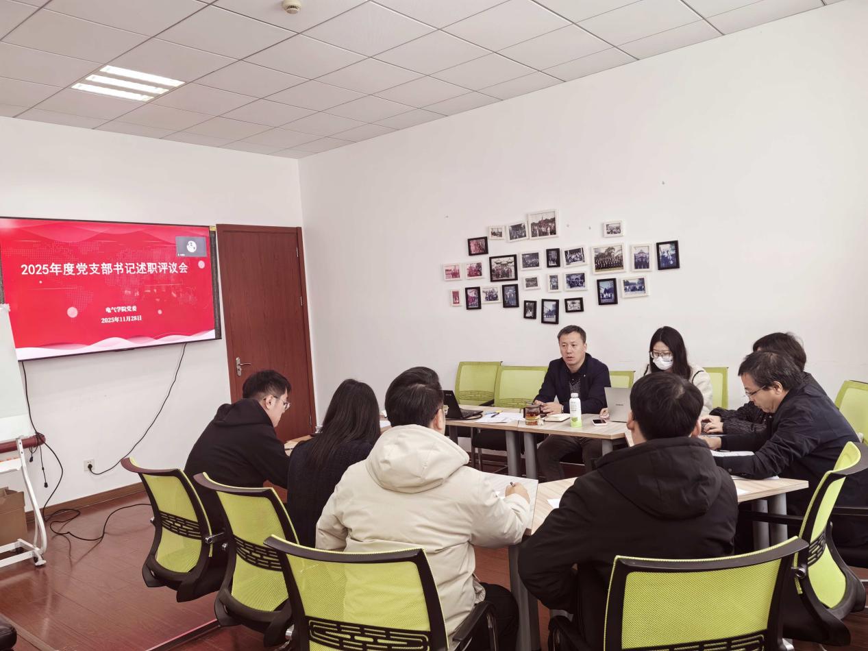 11月28日上午,jdb电子游戏官方网站党委在电气508通过线上线下结合方式召开2025年度基层党支部书记抓党建工作述职评议,回顾2025年学院基层党支部建设情况,总结经验、反思不足,后续工作的努力方向进行谋划与部署。学院党委书记付晓刚、学院党委副书记兼副院长房晶及学院党委委员及全体党支部书记参加。