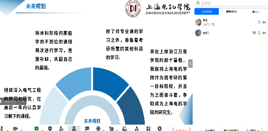 为选拔具有潜力的优秀营员,夏令营特别设置了分组竞选答辩环节。营员分成三组,结合学习经历,围绕自己的兴趣点进行了精彩的答辩展示。他们或阐述自己的科研思路,或分享实践成果,或提出未来研究计划,充分展现了电气学子的风采和实力。