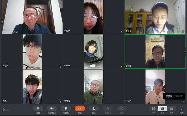 李梦达首先向同学们介绍了学院网课整体运行情况,他表示,在学校的支持和学院全体师生的大力配合下,学院线上教学工作正常平稳进行。学院也严格执行教务处安排时间上课和答疑辅导,提醒同学们严格按时间节点签到、提交作业等。他还向毕业班同学传达了大家关注的毕业设计进度安排等问题。座谈会还向同学们传达了学院近期开展的就业工作、心理援助工作、健康信息登记以及征兵工作等内容。