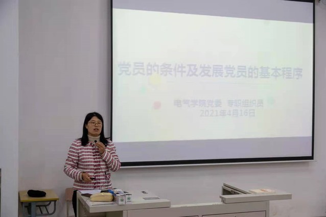 为进一步提高入党积极分子的基础理论素养,增强思想政治教育,加强党的知识普及。4月16日下午13时15分,jdb电子游戏官方网站第39期入党积极分子培训班第四讲在A教116进行。本次党课由jdb电子游戏官方网站专职组织员冯雯雯老师主讲,课程主题为《共产党员的条件及发展党员的程序》。